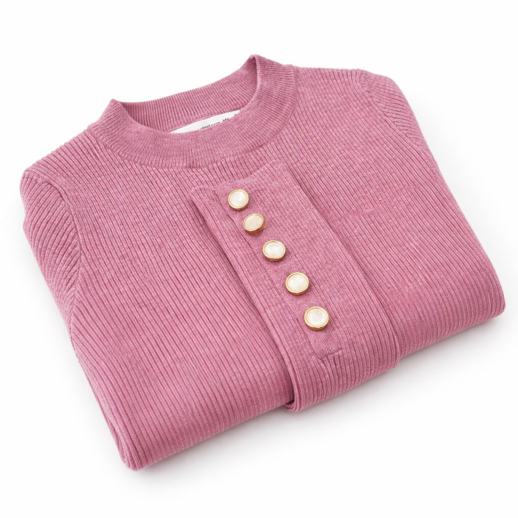 PINK PEARL button Cuff Round Neck Sweater
